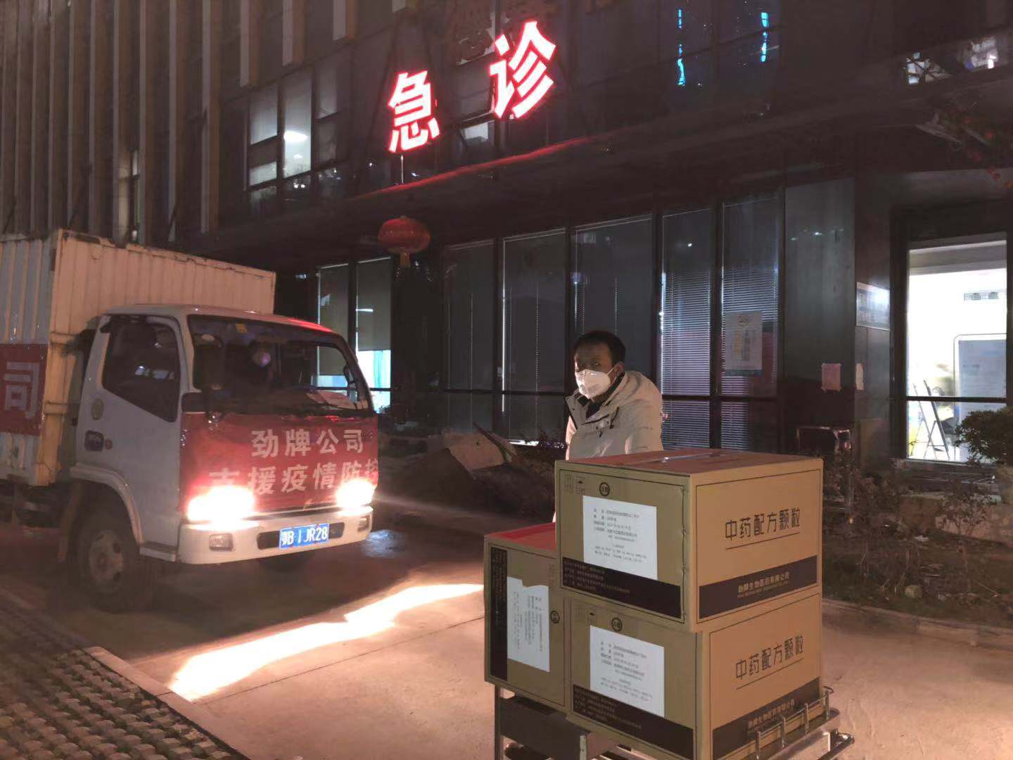 1月28日中午,一輛載有新型肺炎預防藥品的貨車從勁牌公司出發,第二次馳援武漢疫區。到達武漢高速路出口,貨車司機何師傅與勁牌武漢總經銷楊仕祥派來的三輛車接上頭,接力將4.4萬副藥品分頭在第一時間送往武漢十余家醫院。頭一天,何師傅一輛車送武漢7家醫院,送到凌晨1點才返回黃石。
