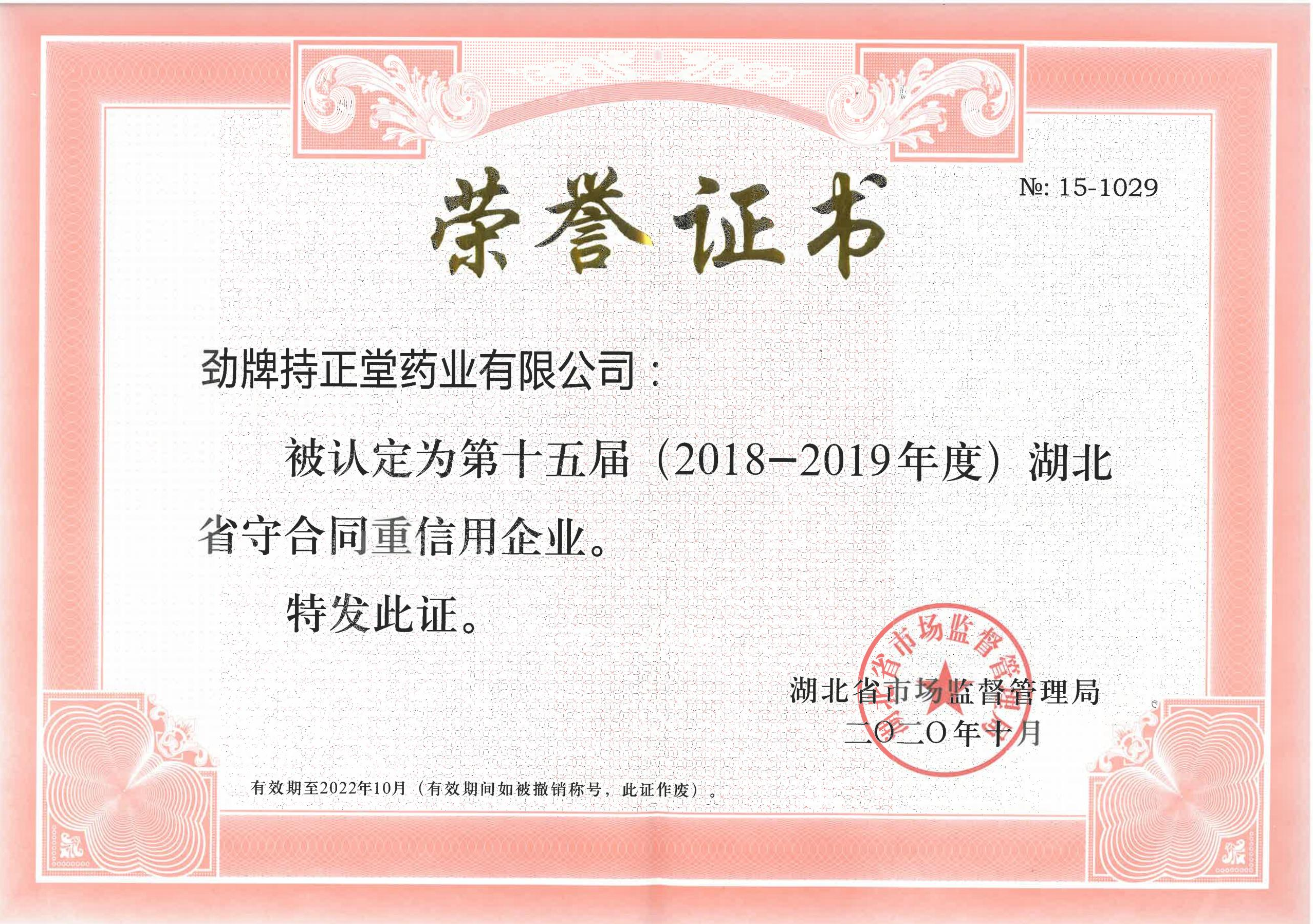 第十五屆湖北省守合同重信用企業